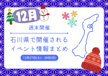 石川イベント週末開催イベント開催 石川県で今週末(12/27-28)開催のイベント情報まとめ 石川県で週末、12月27日(土)、12月28日(日)に開催されるイベント情報をまとめました12/27(土)、12/28(... 2025.12.15 2025.12.17 石川イベント週末開催イベント開催
