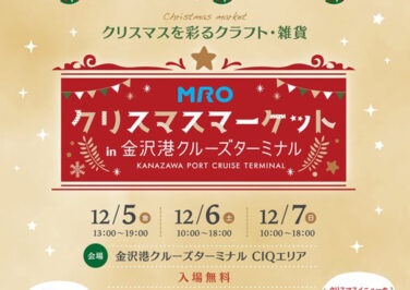 石川イベント金沢開催 [12/5-7]MROクリスマスマーケットin金沢港クルーズターミナル開催(金沢) 『MROクリスマスマーケット in 金沢港クルーズターミナル』が石川県金沢市の「金沢港クルーズターミナル」で2025年1... 2025.11.26 石川イベント金沢開催