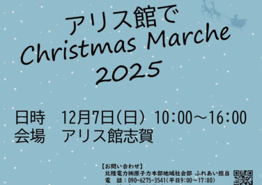 石川イベント能登南部開催 [12/7]アリス館でChristmas Marche2025がアリス館志賀で開催(能登志賀町) 『アリス館でChristmas Marche2025』が石川県羽咋郡志賀町の「アリス館志賀」で2025年12月7日(日)... 2025.11.26 石川イベント能登南部開催