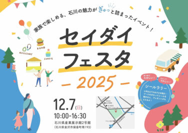 石川イベント金沢開催 [12/7]家族で楽しめる、石川の魅力がぎゅっと詰まったイベント!セイダイフェスタ2025が石川県産業展示館で開催(金沢) 家族で楽しめる、石川の魅力がぎゅっと詰まったイベント!『セイダイフェスタ 2025』が石川県金沢市の「石川県産業展示館」... 2025.11.26 石川イベント金沢開催
