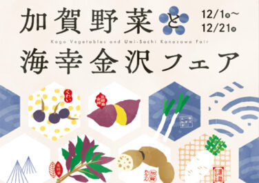 石川イベント金沢開催 [12/1-21]加賀野菜と海幸金沢フェアが金沢百番街、クロスゲート金沢、金沢フォーラスで開催(金沢) 『加賀野菜と海幸金沢フェア』が石川県金沢市の「金沢百番街」、「クロスゲート金沢」、「金沢フォーラス」の3館合同で2025... 2025.12.04 石川イベント金沢開催