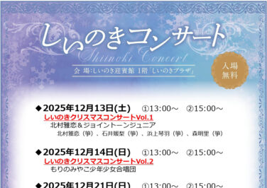 石川イベント金沢開催 [12/13-1/24]しいのきコンサート〜クリスマス&ニューイヤーコンサート〜がしいのき迎賓館で開催(金沢) 『しいのきコンサート〜クリスマス&ニューイヤーコンサート〜』が石川県金沢市の「しいのき迎賓館」で2025年12月、202... 2025.12.05 石川イベント金沢開催