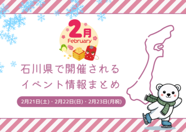 石川イベント週末開催イベント開催 石川県で今週末(2/21-2/23)開催のイベント情報まとめ 石川県で週末、2026年2月21日(土)、2月22日(日)、2月23日(月祝)に開催されるイベント情報をまとめました2/... 2026.01.27 2026.01.28 石川イベント週末開催イベント開催