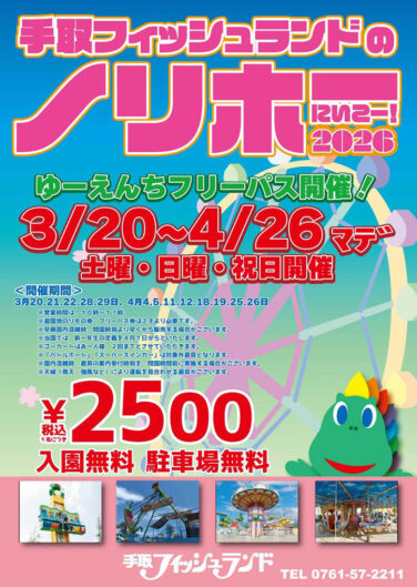 白山・能美石川イベント開催 [3/20-4/26]春のゆうえんちフリーパス「ノリホーにいこー!2026」が手取フィッシュランドで開催(能美) 『春のゆうえんちフリーパス ノリホーにいこー!2026』が石川県能美市の「手取フィッシュランド」で2026年3月20日(... 2026.03.16 白山・能美石川イベント開催