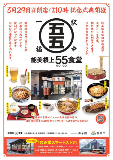 白山・能美石川イベント開催 [3/29]能美根上駅利用促進施設オープン記念式典開催(能美市) 『能美根上駅利用促進施設オープン記念式典』が石川県能美市の「能美根上駅」で2026年3月29日(日)に開催されます能美根... 2026.03.27 白山・能美石川イベント開催