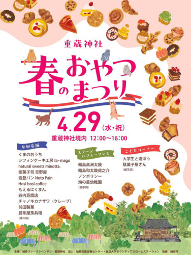 石川イベント能登南部開催 [4/11]春のお花見グルメマーケットがパトリアで開催(能登七尾) 『春のお花見グルメマーケット』が石川県七尾市の「パトリア」で2026年4月11日(土)に開催されます春のお花見グルメマー... 2026.03.31 石川イベント能登南部開催