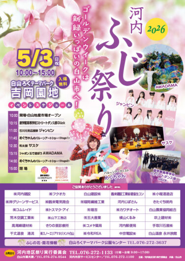 白山・能美石川イベント開催 [4/25-26]北陸最大級のドッグスポーツイベント『ドッグスポーツフェスティバルin白山』がアプリコットパークで開催(白山市) 北陸最大級のドッグスポーツイベント『ドッグスポーツフェスティバルin白山』が石川県白山市の「アプリコットパーク」にて、2... 2026.04.23 白山・能美石川イベント開催