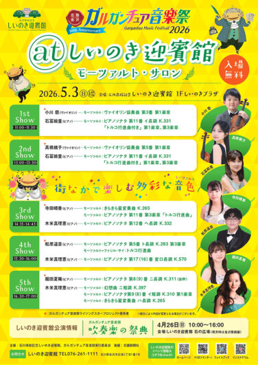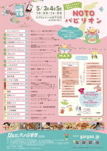 石川イベント能登南部開催 [5/2]ガルガンチュア音楽祭2026〜能登復興応援コンサート・未来につなぐ〜が能登演劇堂で開催(能登七尾) 『ガルガンチュア音楽祭2026〜能登復興応援コンサート・未来につなぐ〜』が石川県七尾市の「能登演劇堂」で2026年5月2... 2026.04.27 石川イベント能登南部開催