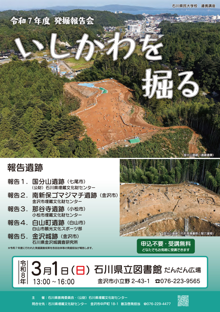 令和7年度発掘報告会『いしかわを掘る』が石川県金沢市の「石川県立図書館」で2026年3月1日(日)に開催されます