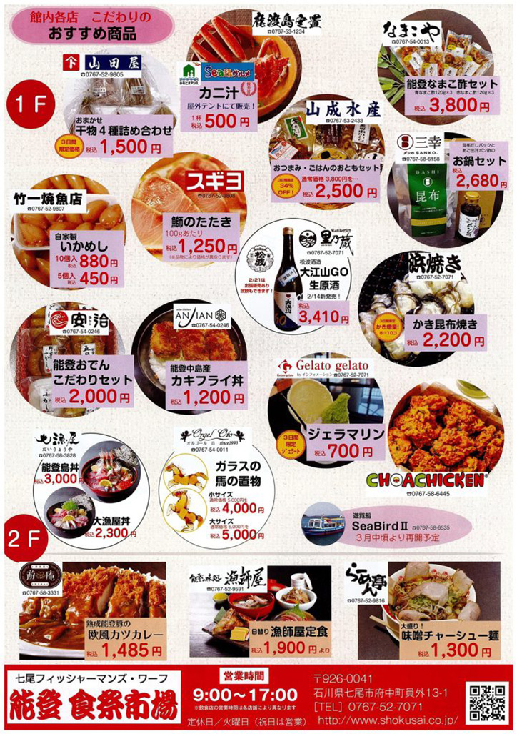 | お問合せ | 道の駅 能登食祭市場(TEL.0767-52-7071) |