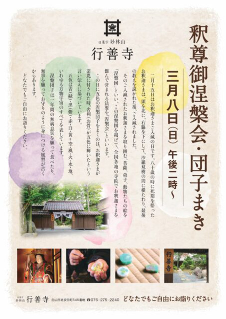 3月8日(日)に石川県白山市の「行善寺」にて『行善寺柿乃市・涅槃会』が開催されます