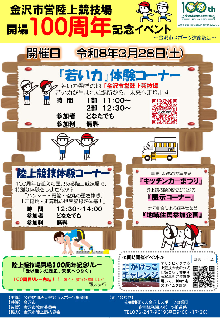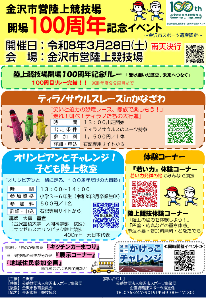 | イベント名 | 金沢市営陸上競技場 開場100周年記念イベント |