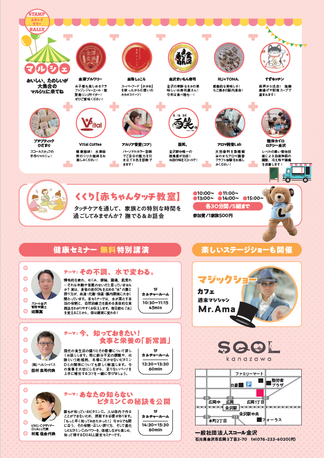 | 開催場所 | スコール金沢 館内 / 駐車場入口 (〒920-0031 石川県金沢市広岡3丁目3−70) |