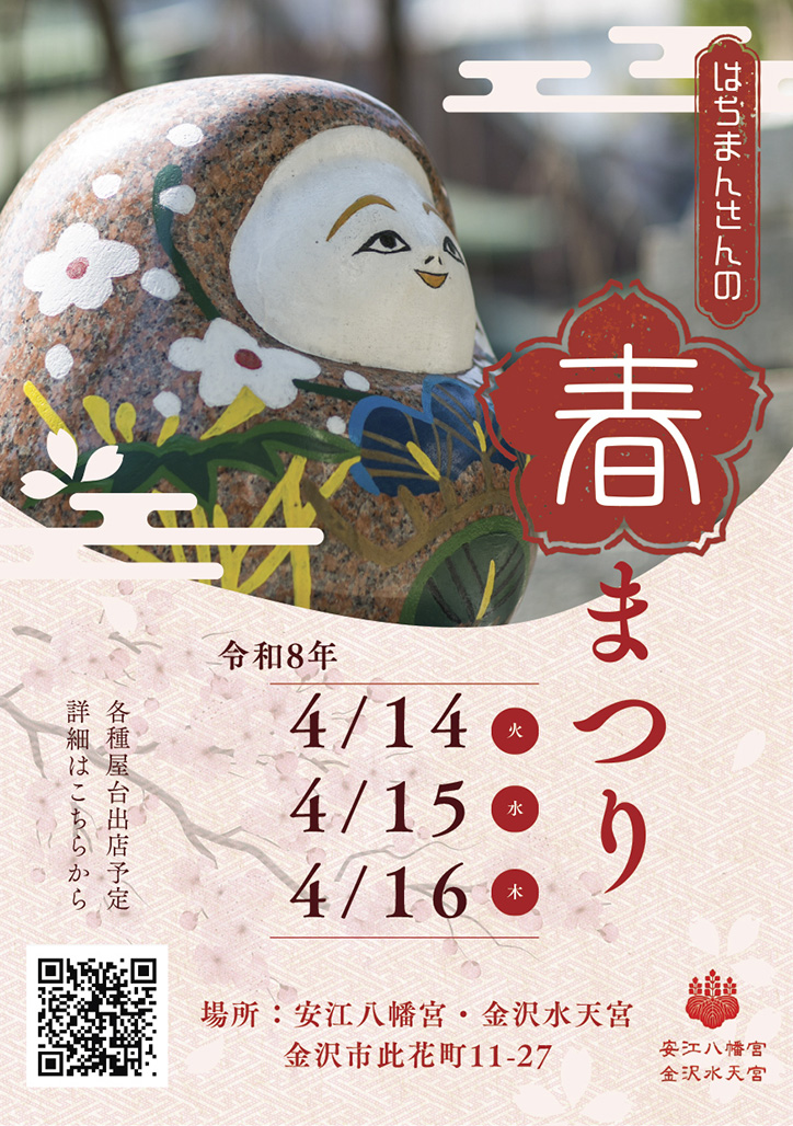 『はちまんさんの春まつり(春季例祭)』が石川県金沢市の「安江八幡宮」で2026年4月14日(火)から4月16日(木)まで開催されます