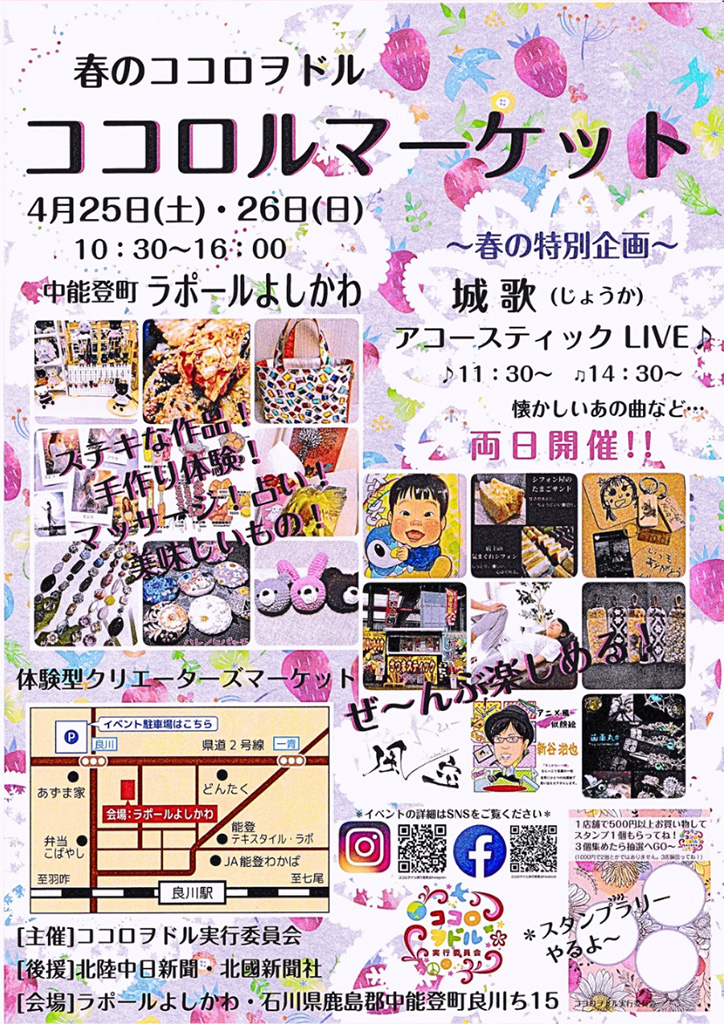 春のココロヲドル『ココロルマーケット』が石川県鹿島郡中能登の「ラポールよしかわ」にて、2026年4月25日(土)、4月26日(日)に開催されます
