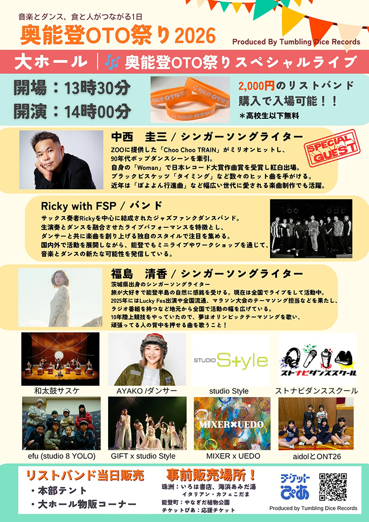 ※奥能登OTO祭りの大ホール公演は、入場チケット(リストバンド)が必要です