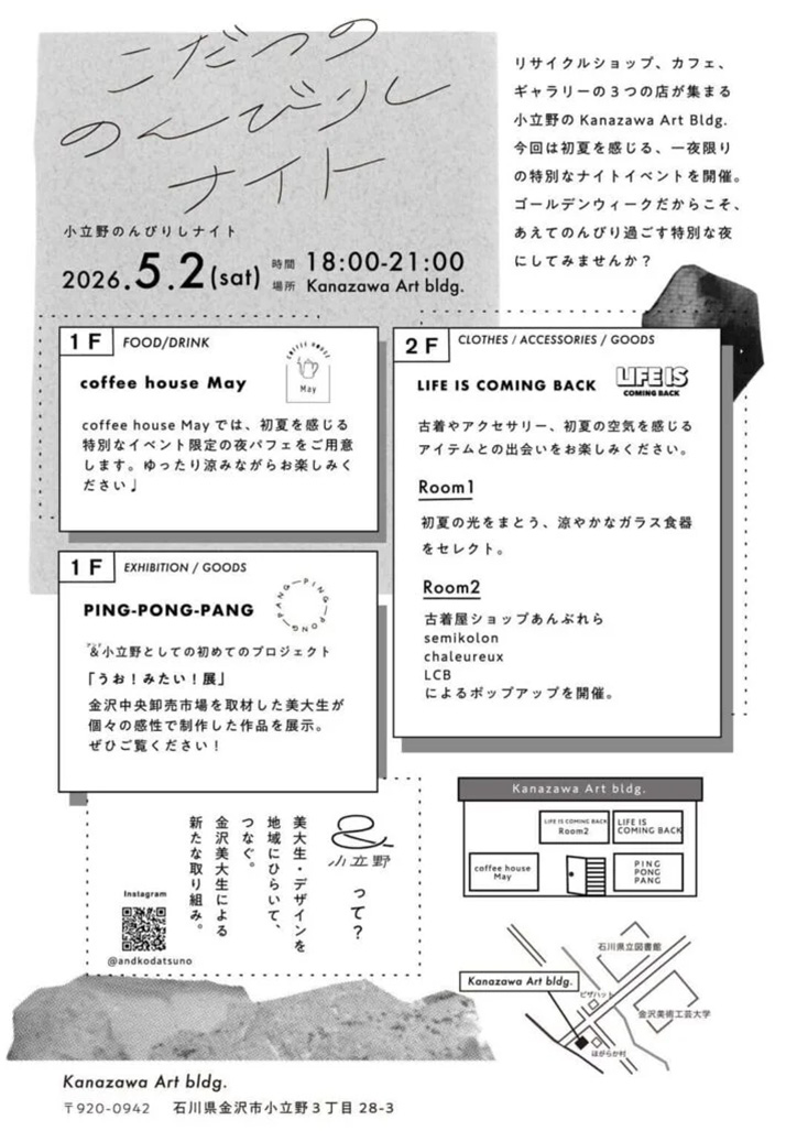 『こだつののんびりしナイトin Kanazawa Art bldg』が石川県金沢市の「Kanazawa Art Bldg」で2026年5月2日(土)に開催されます