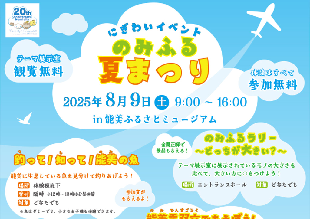 8月9日(土)に石川県能美市の「能美ふるさとミュージアム」にて『のみふる夏まつり』が開催されます