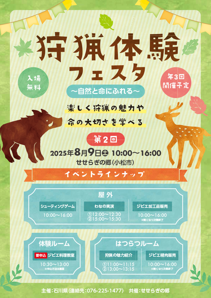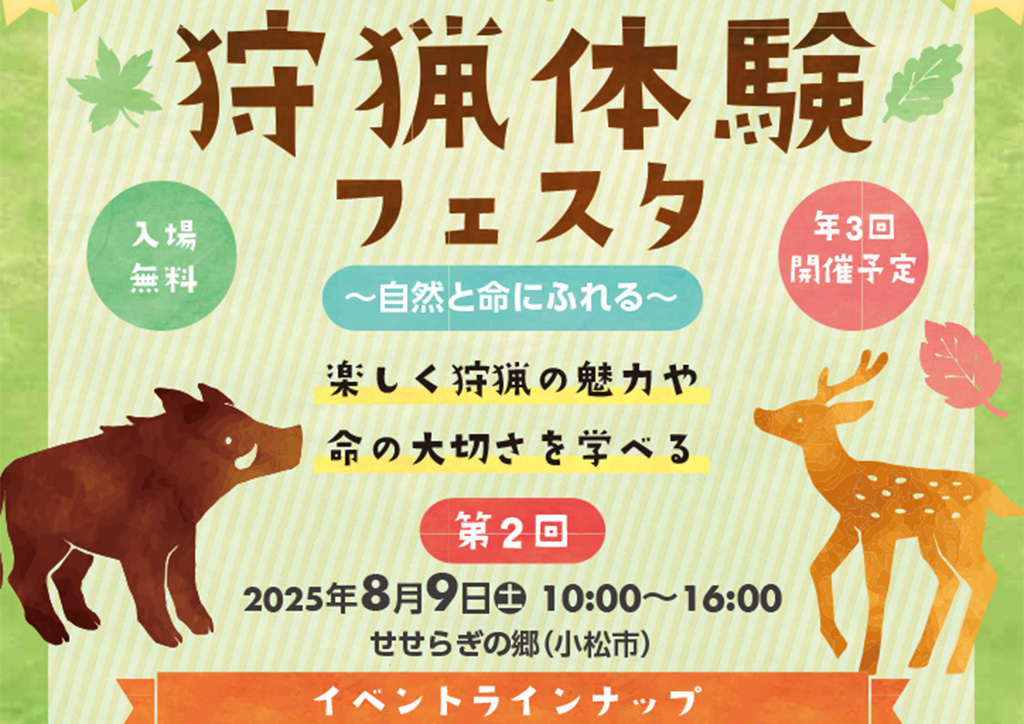 『狩猟体験フェスタ~自然と命にふれる~』が石川県小松市の「せせらぎの郷」で2025年8月9日(土)に開催されます