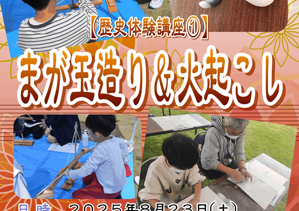 『歴史体験講座 まが玉造り&火起こし』が石川県七尾市の「能登歴史公園センター周辺、芝生広場」で2025年8月23日(土)に開催されます