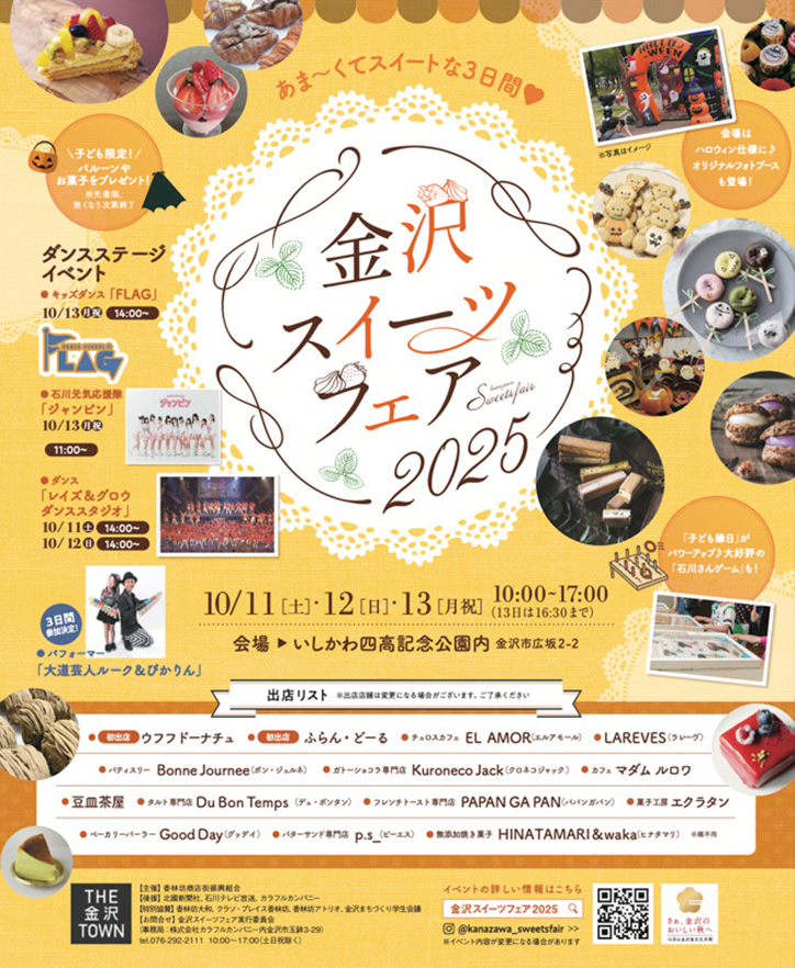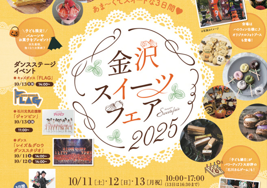 『金沢スイーツフェア2025』が石川県金沢市の「いしかわ四高記念公園」で2025年10月11日(土)から10月13日(月祝)まで開催されます