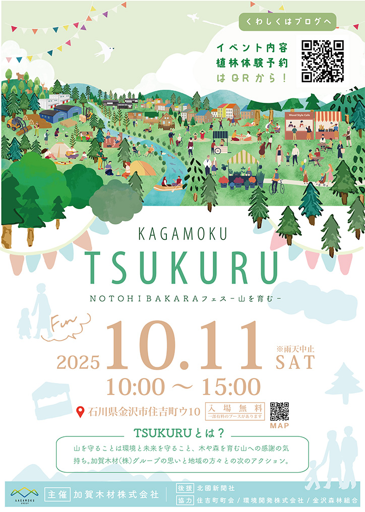 お問合せ | TSUKURU運営委員会(加賀木材株式会社内) TEL.076-238-4131 当日の緊急連絡先(TEL.090-2030-0600) |