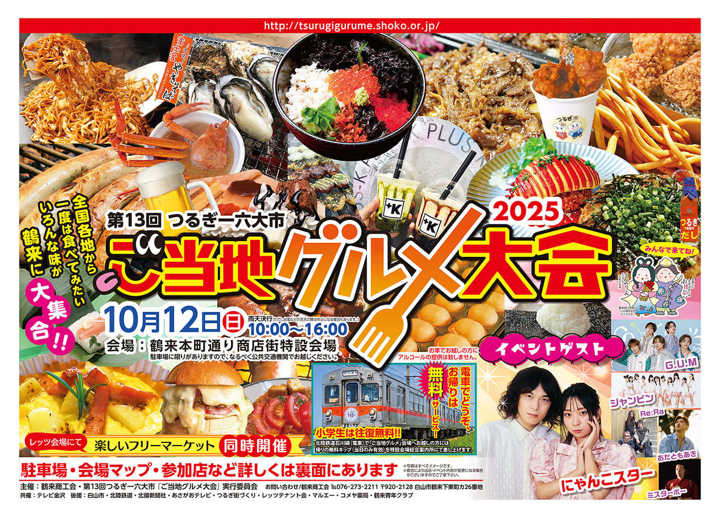 『第13回つるぎ一六大市ご当地グルメ大会』が石川県白山市鶴来の「鶴来本町通り商店街特設会場」で2025年10月12日(日)に開催されます