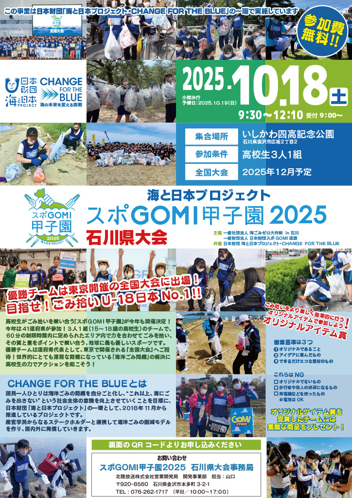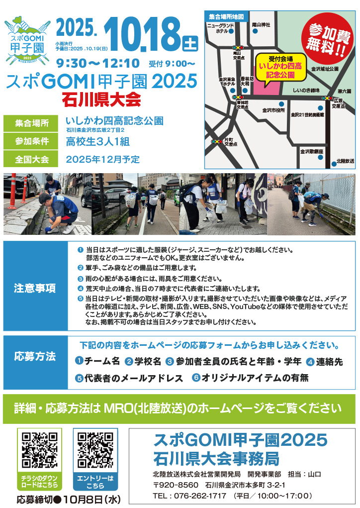 10月18日(土)に石川県金沢市の「いしかわ四高記念公園」にて、『スポGOMI甲子園2025』の石川県大会が開催されます