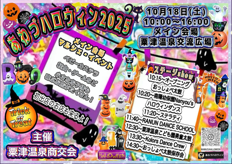 10月18日(土)に石川県小松市粟津温泉の「粟津温泉交流広場」にて『あわづハロウィン 2025』が開催されます