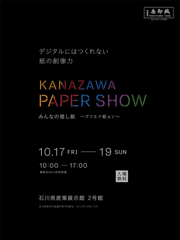 10月17日(金)から10月19日(日)まで石川県金沢市の「石川県産業展示館2号館」にて『第52回金沢ペーパーショウ』が開催されます