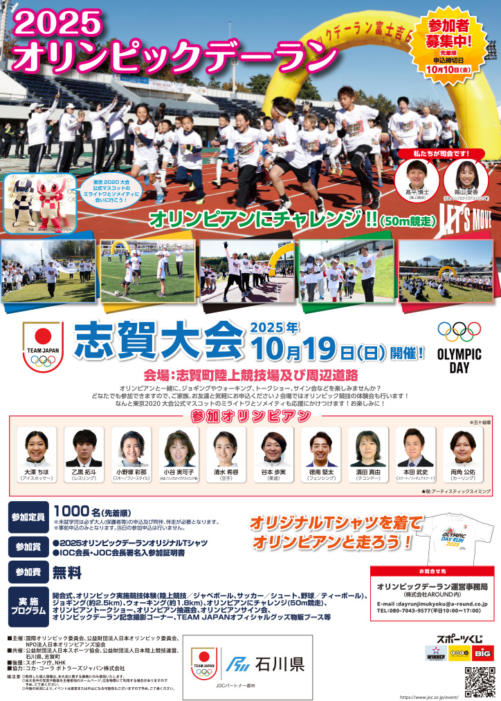 10月19日(日)に石川県羽咋郡志賀町の「志賀町陸上競技場」にて『2025オリンピックデーラン 志賀大会』が開催されます
