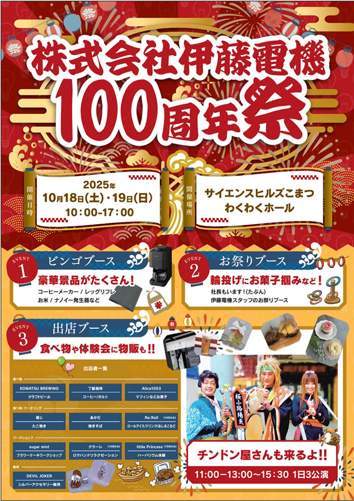 ぜひご家族やご友人と『伊藤電機100周年まつり』に出かけてみませんか