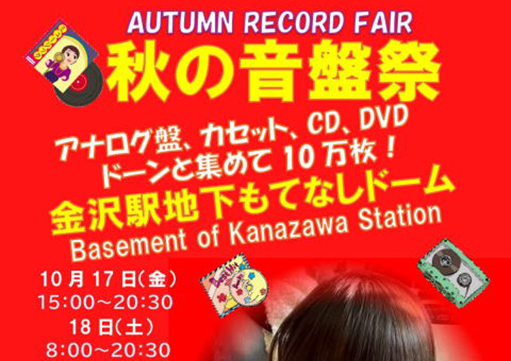 10月17日(金)から10月19日(日)まで石川県金沢市の「金沢駅もてなしドーム地下広場」にて『オータムレコードフェア秋の音盤祭』が開催されます