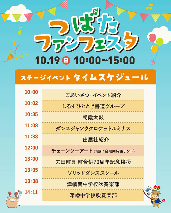 津幡町合併70周年記念イベント「つばたファンフェスタ」イベント内容