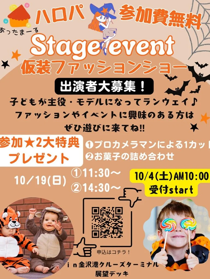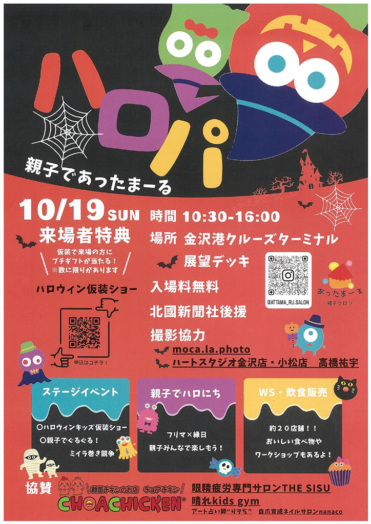 10月19日(日)に石川県金沢市の「金沢港クルーズターミナル」にて『親子であったまーるハロウィンパーティー』が開催されます