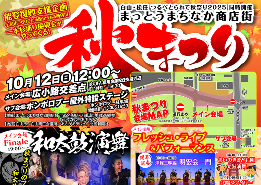 『まっとうまちなか商店街 秋まつり』が石川県白山市の「広小路交差点付近」で2025年10月12日(日)に開催されます
