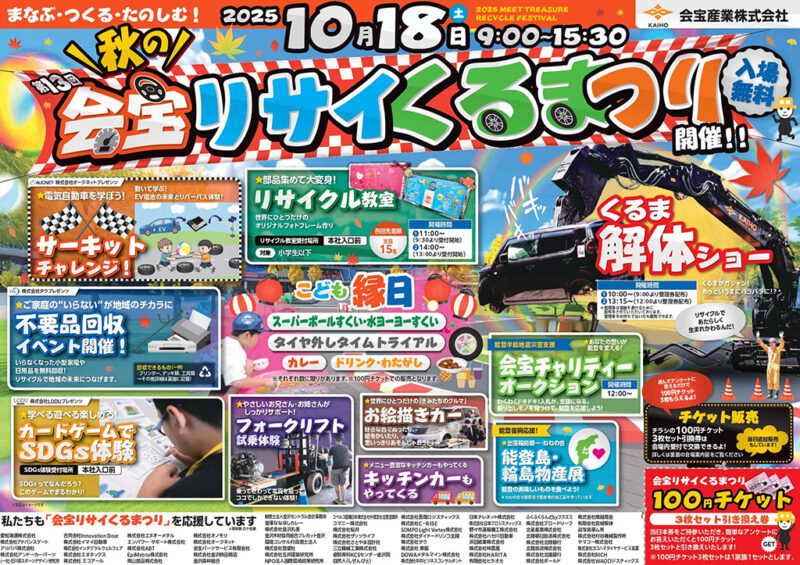 『第13回 会宝リサイくるまつり』が石川県金沢市の「会宝産業株式会社」で2025年10月18日(土)に開催されます