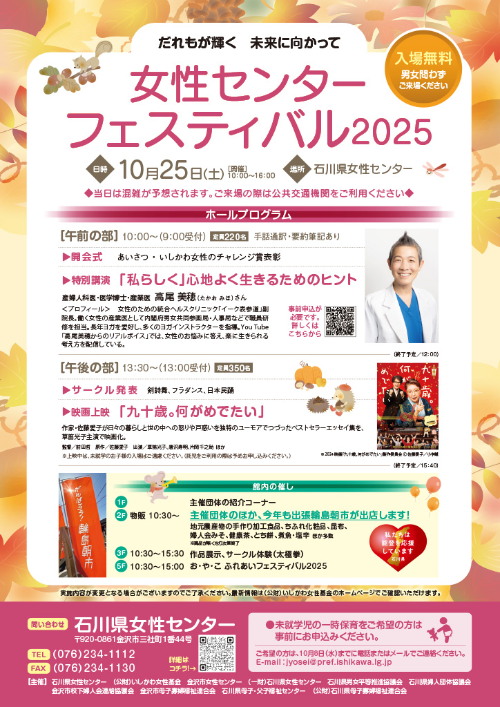 10月25日(土)に石川県金沢市の「石川県女性センター」にて『女性センターフェスティバル2025』が開催されます