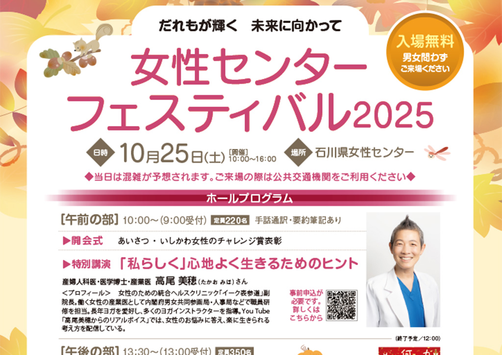 10月25日(土)に石川県金沢市の「石川県女性センター」にて『女性センターフェスティバル2025』が開催されます