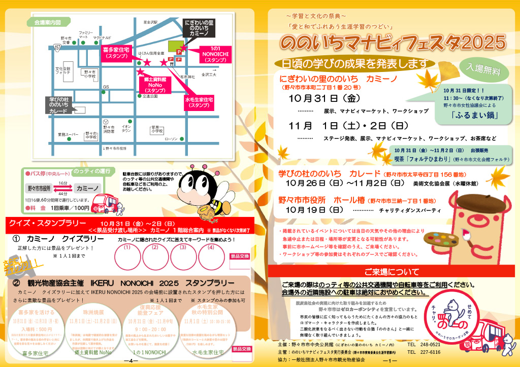 ののいちマナビィフェスタ2025@野々市市役所・にぎわいの里ののいちカミーノ・学びの杜ののいち カレード イベント内容