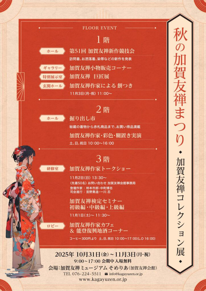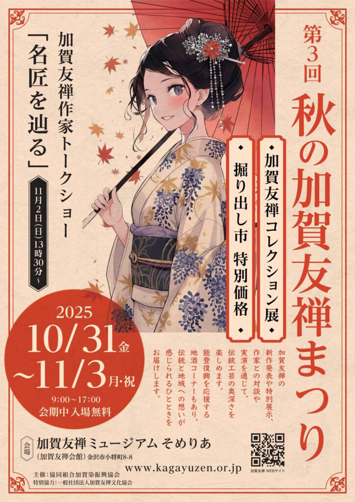 『第3回秋の加賀友禅まつり』が石川県金沢市の「加賀友禅ミュージアムそめりあ」で2025年10月31日(金)から11月3日(月祝)まで開催されます