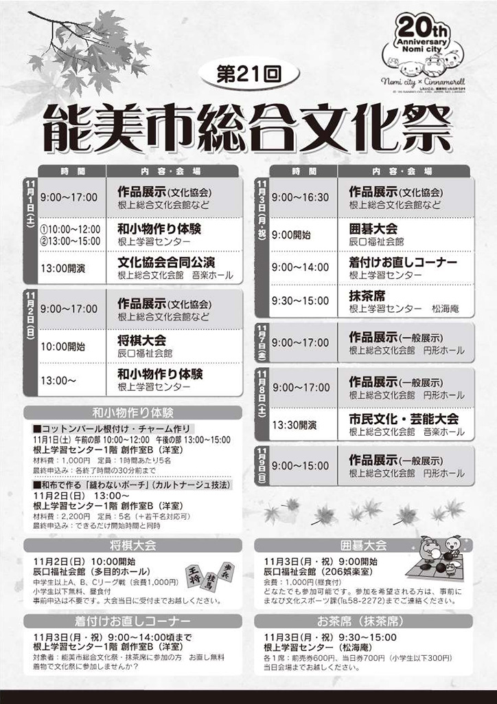能美市誕生20周年記念 第21回能美市総合文化祭@根上総合文化会館・根上学習センター イベント内容