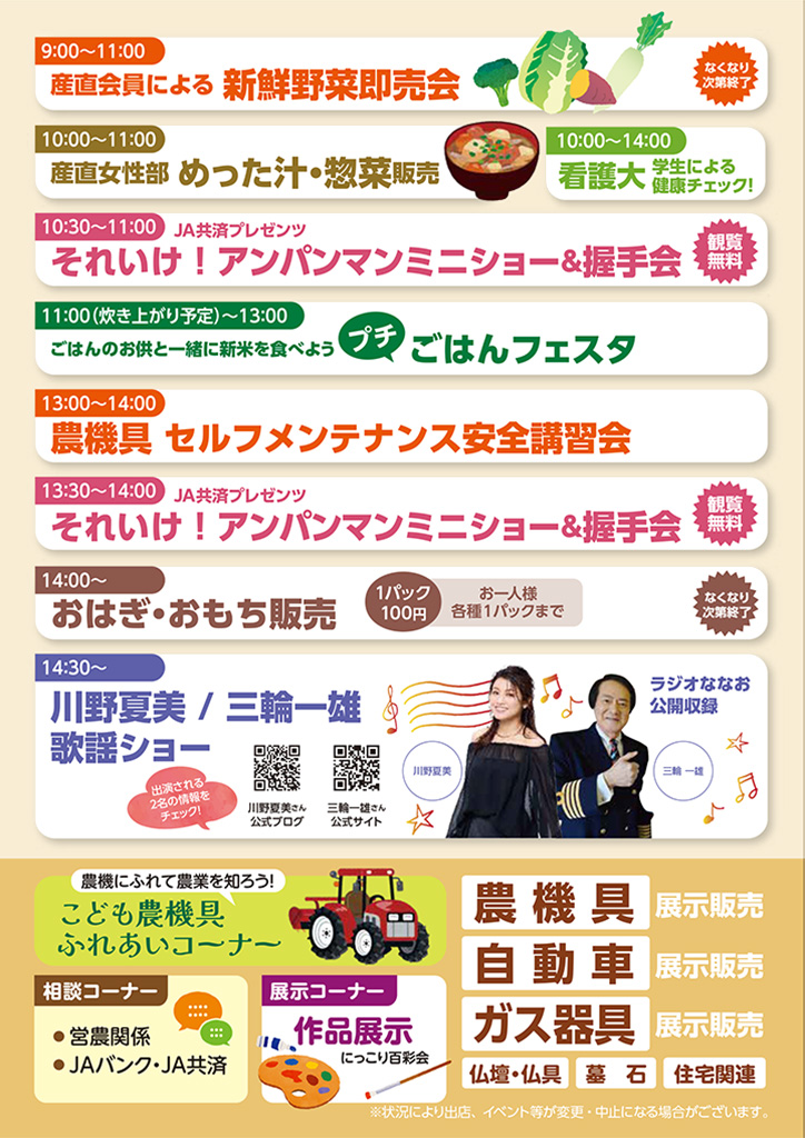 JA石川かほく 秋祭り@JAグリーンかほく イベント内容