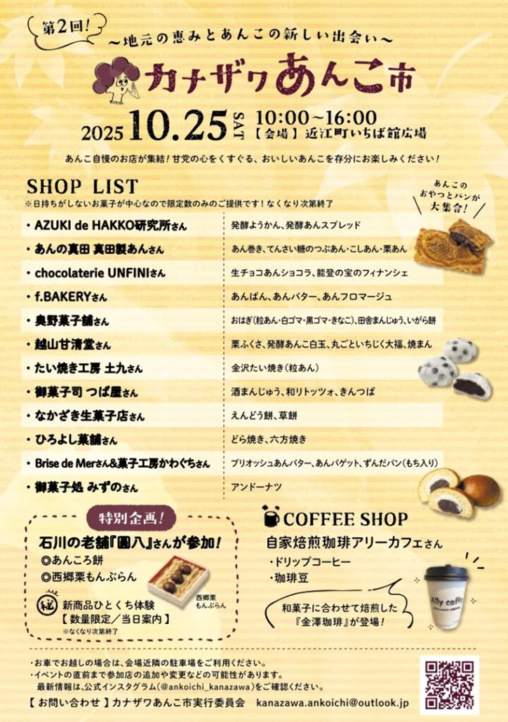10月25日(土)に石川県金沢市の「近江町いちば館広場」にて『カナザワあんこ市』が開催されます