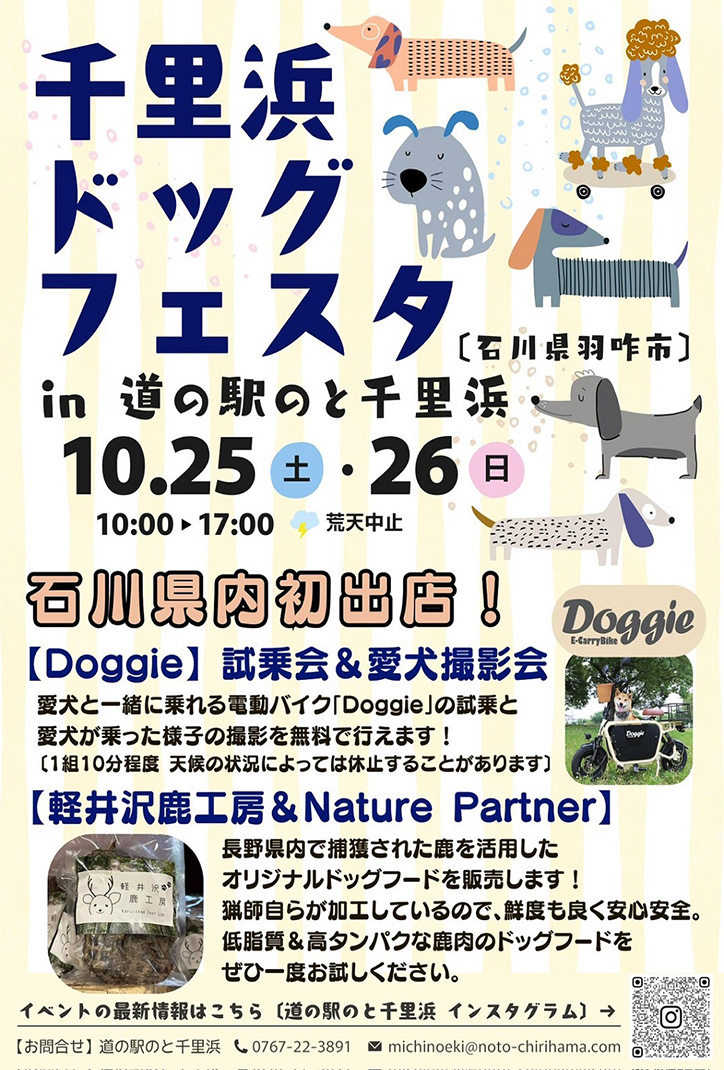 『千里浜ドッグフェスタ』が石川県羽咋市の「道の駅 のと千里浜」で2025年10月25日(土)、10月26日(日)に開催されます