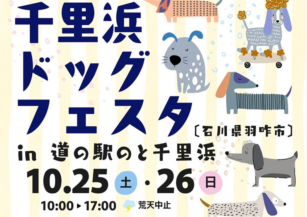 10月25日(土)、10月26日(日)に石川県羽咋市の「道の駅 のと千里浜」にて『千里浜ドッグフェスタ』が開催されます