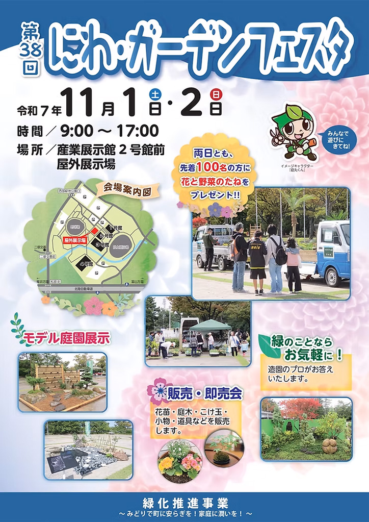 公式サイト | https://www.isizou.jp/post/第38回-にわ・ガーデンフェスタ開催のお知らせ |