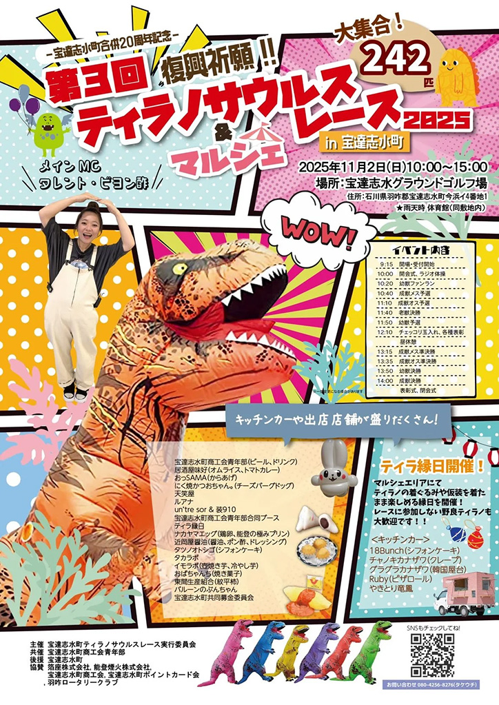 | イベント名 | 第3回 復興祈願 ティラノサウルスレース&マルシェ2025 in 宝達志水町 |