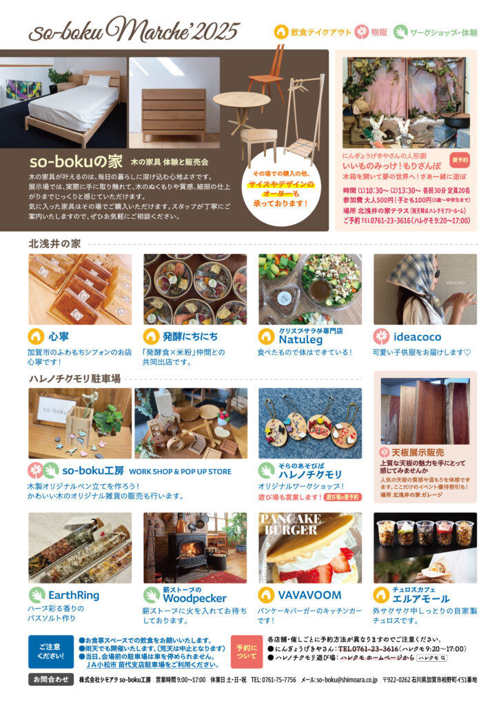 11月8日(土)に石川県小松市の「株式会社シモアラ 北浅井の家」、「そらのあそびば ハレノチクモリ」にて『so-bokuマルシェ2025』が開催されます