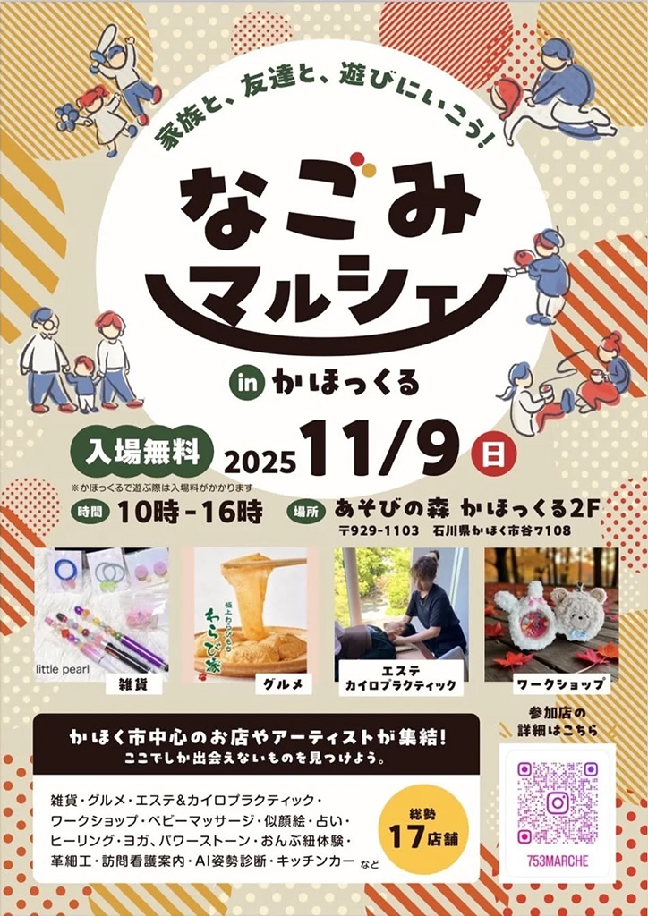 『なごみマルシェ』が石川県かほく市の「あそびの森かほっくる」で2025年11月9日(日)に開催されます